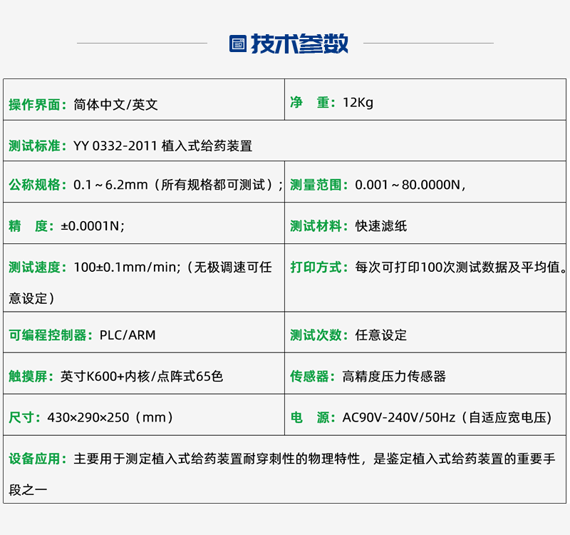 NCC0332-C給藥裝置耐穿刺性測(cè)試儀是國(guó)家檢驗(yàn)生產(chǎn)廠(chǎng)家產(chǎn)品性能的高效檢測(cè)設(shè)備,符合YY 0332-2011 植入式給藥裝置標(biāo)準(zhǔn)。實(shí)時(shí)顯示穿刺力曲線(xiàn)測(cè)試結(jié)果及最大刺穿力數(shù)據(jù)??涩F(xiàn)實(shí)F0到F5峰值數(shù)據(jù)。針對(duì)測(cè)試結(jié)果自動(dòng)判斷,不合格啟動(dòng)自動(dòng)報(bào)警,并由打印機(jī)打印出測(cè)試數(shù)據(jù)及結(jié)果以供分析。是國(guó)家檢驗(yàn)生產(chǎn)廠(chǎng)家產(chǎn)品能力的有效檢測(cè)手段。