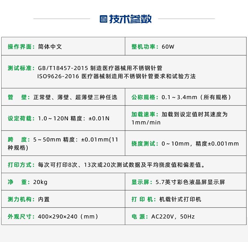 威夏科技 GX9626-T 醫(yī)用注射針管(針)剛性測試儀是國家檢驗生產(chǎn)廠家產(chǎn)品性能的高效檢測設備。醫(yī)用注射針管(針)剛性測試儀主要用于測定醫(yī)用注射針的剛性性能的物理特性,是鑒定醫(yī)用注射針的重要手段之一。測試操控范圍包括:公稱規(guī)格、管壁、跨度、設定載荷、最大撓度、打印設定、測試、上行、下行、時間、標定。